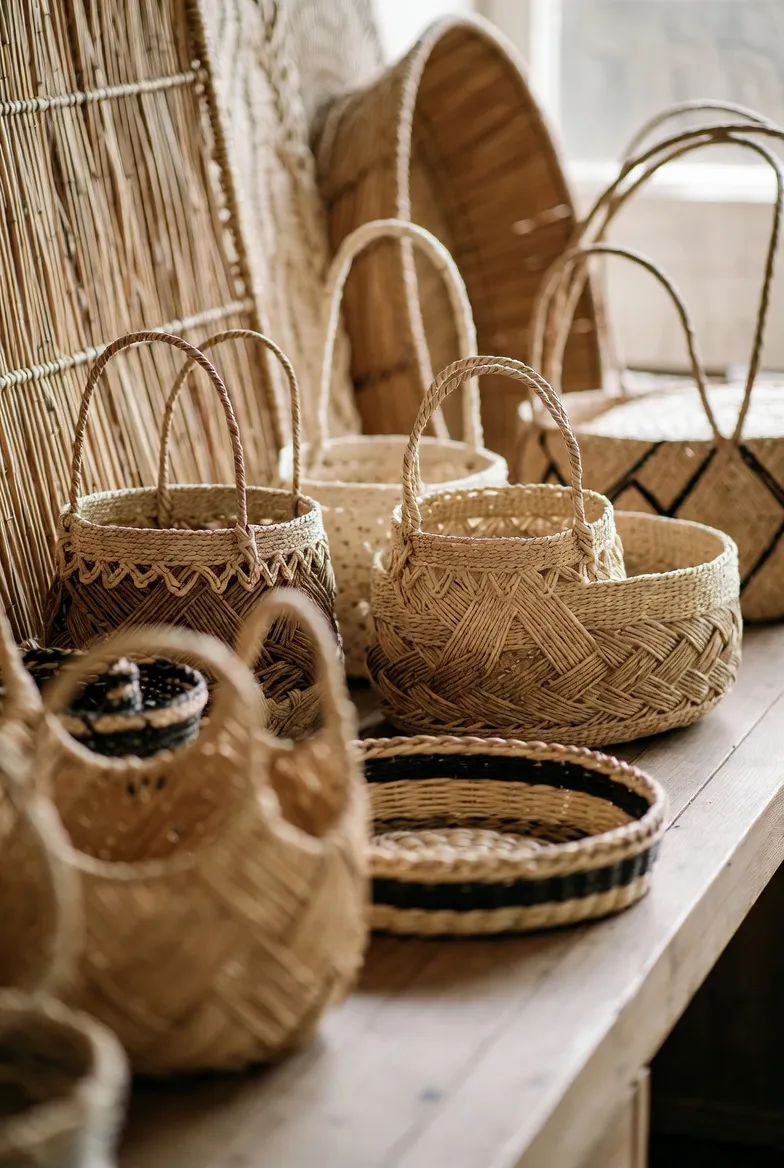 Beautifully woven baskets made from natural materials, combining traditional techniques with modern aesthetics. Ideal for storage or as standalone decorative elements in your home.
